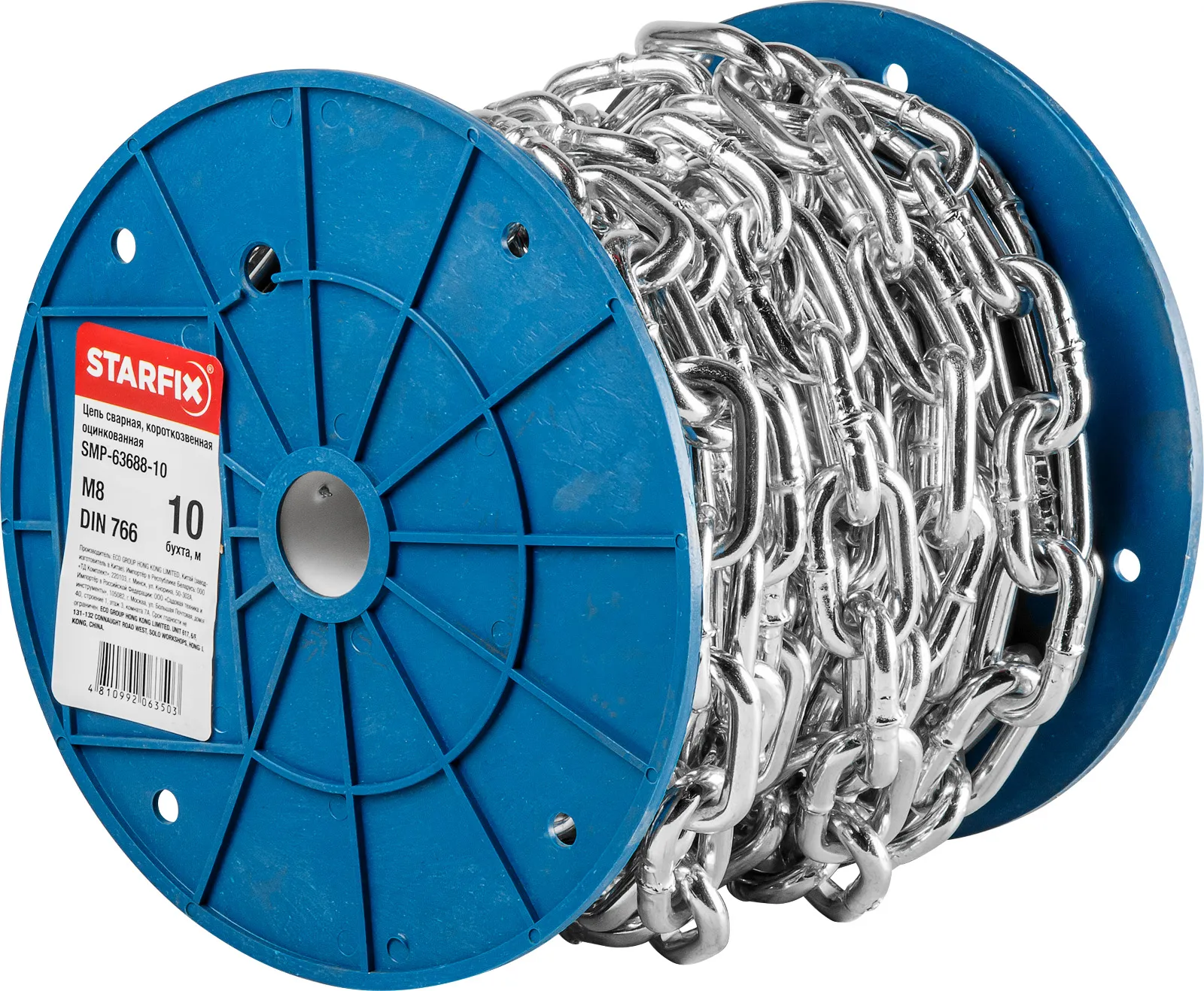Цепь сварная короткозвенная, оцинк. М8 DIN 766 (бухта 10 м) STARFIX