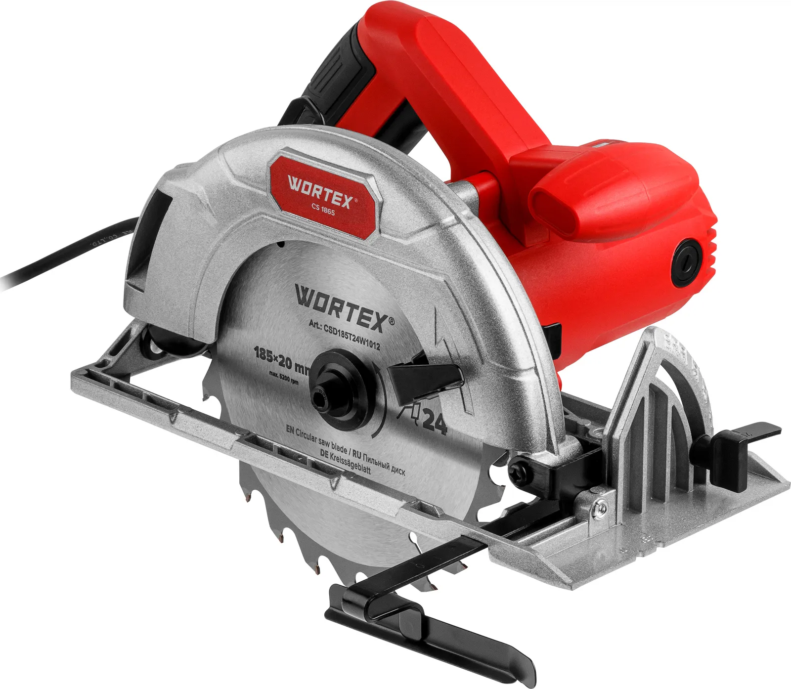 Циркулярная пила WORTEX CS 1865 в кор. 1400 Вт, 185 мм, пропил до 65 мм, алюм. подошва