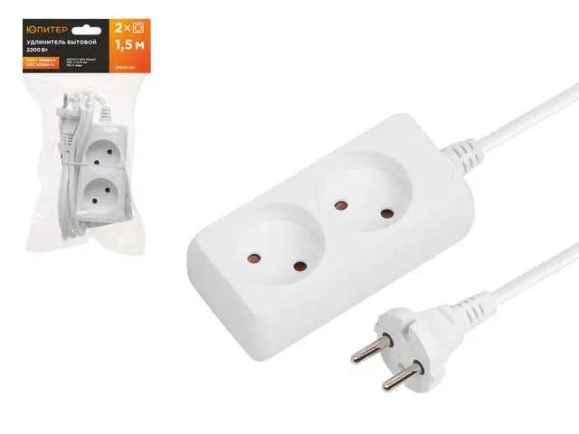 Удлинитель 1,5м (2 роз., 2,2кВт, б/з, ПВС 2х0,75) Юпитер