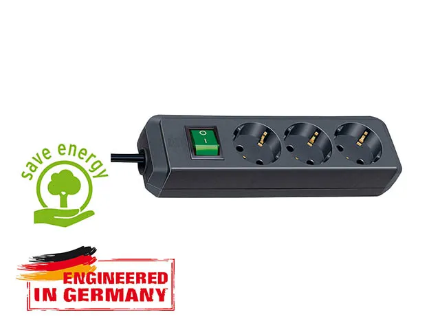 Удлинитель 1.5м (3 роз., 3.3кВт, с/з, выкл., ПВС) черный Brennenstuhl Eco-Line