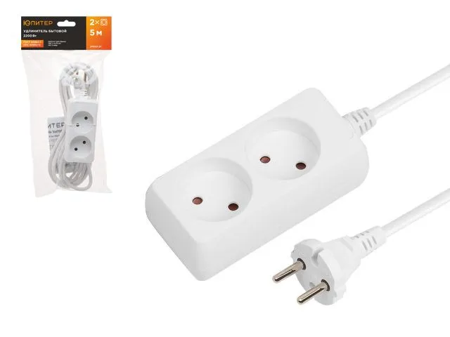 Удлинитель 5м (2 роз., 2,2кВт, б/з, ПВС 2х0,75) Юпитер