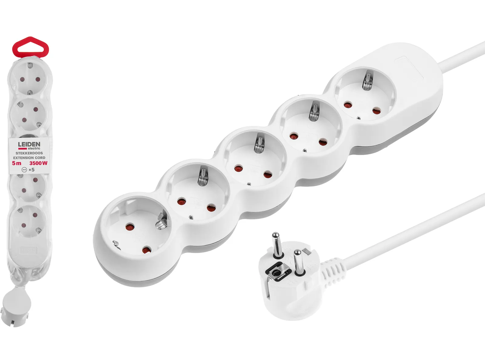 Удлинитель 5м (5 роз., 3,5кВт, с/з, ПВС 3х1,5) LEIDEN ELECTRIC