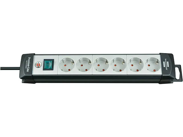 Удлинитель 5м (6 роз., 3.3кВт, с/з, выкл., ПВС) чер./свет.-серый Premium Line
