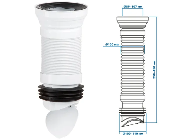 Удлинитель гибкий для унитаза, армированный 450 мм, с клапаном обратного хода, AV Engineering