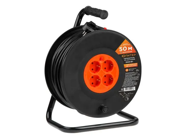Удлинитель на катушке 50м (4 роз., 3,5кВт, с/з, ПВС 3х1,5) Юпитер