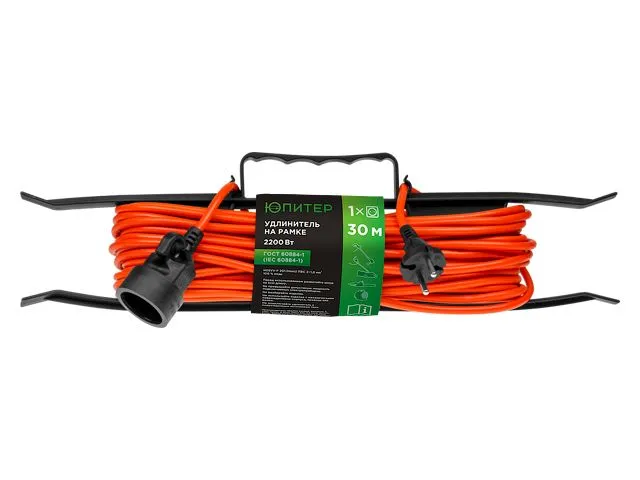 Удлинитель на рамке 30м (1 роз., 2,2 кВт, б/з, ПВС 2х1) Юпитер