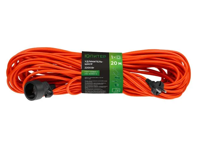 Удлинитель-шнур ЮПИТЕР изготовлен только из качественных материалов в соответствии с ГОСТ60884-1 и предназначен для удаленной работы с электроинструментом в гараже, мастерской или других помещениях
