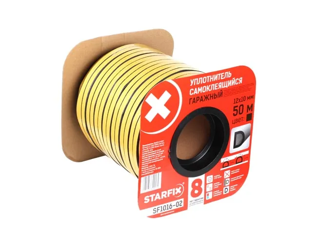 Уплотнитель гаражный "D" черный 12х10мм 50м (сдвоенный профиль 2х25м) STARFIX