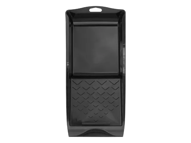Описание: специальная форма углов для удобства слива краски, высококачественная пласмасса, прочная конструкция, специальный дизайн зоны прокатки позволяет быстро снять излишки краски с валика,
