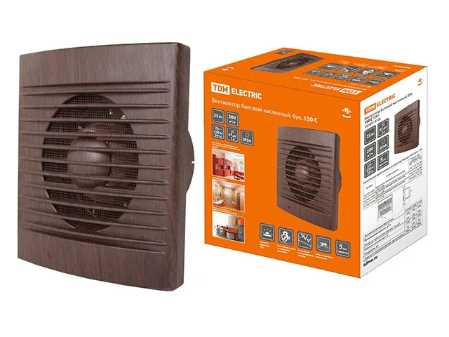 Вентилятор бытовой настенный, 150 С "ЭКО" (бук) TDM