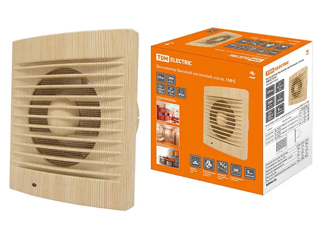 Вентилятор бытовой настенный, 150 С "ЭКО" (сосна) TDM