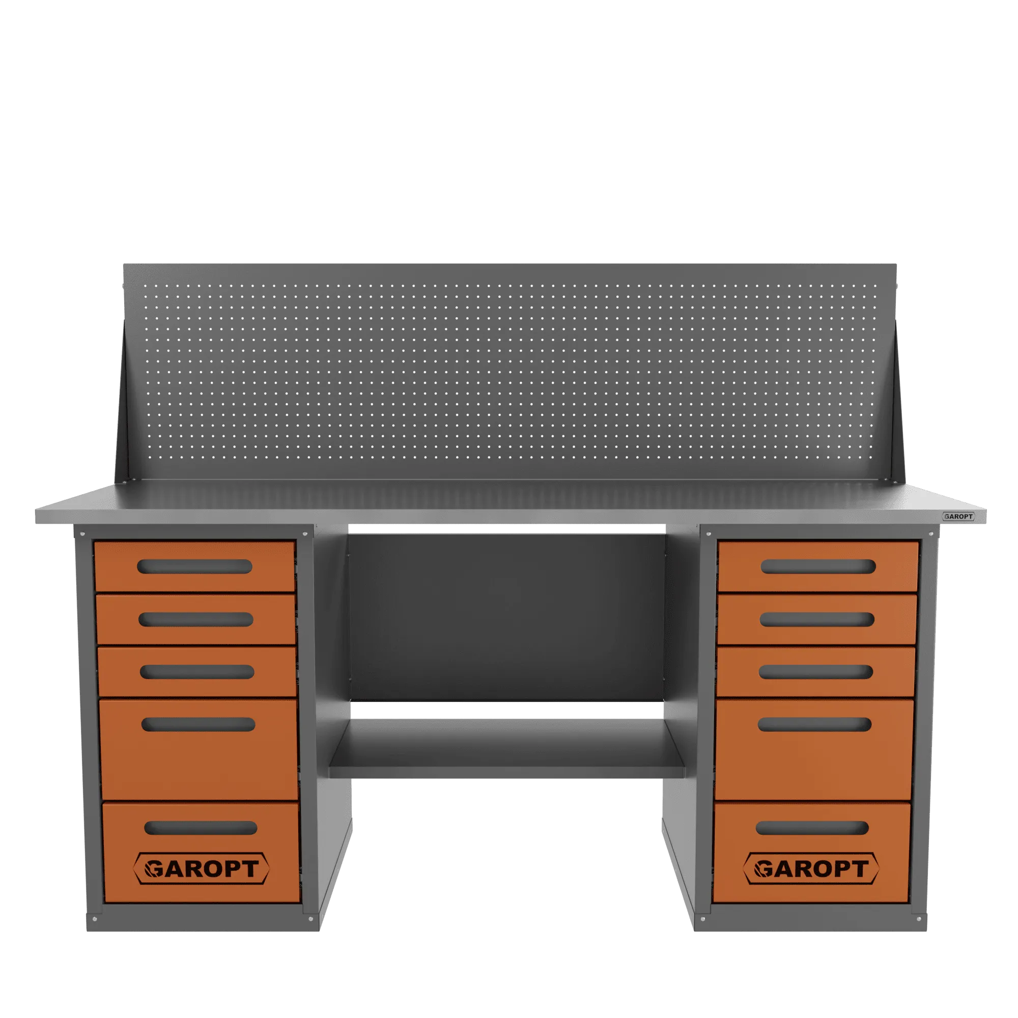 Верстак двухтумбовый 5 ящиков /5 ящиков с экраном Garopt оранжевый 1800*700