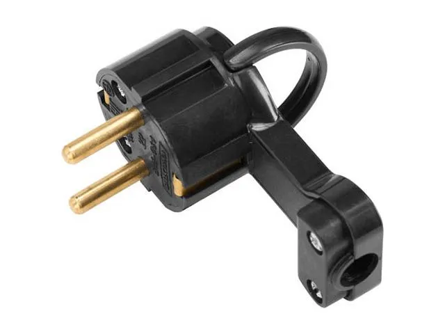 Вилка угловая с откидывающимся ушком (с/з, 16А, 250В) черная, Bylectrica