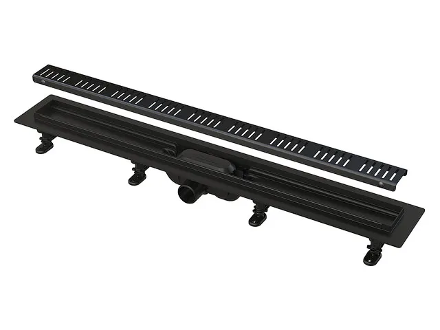 Водоотводящий желоб с порогами для перфорированной решетки чёрный (Simple), Alcaplast