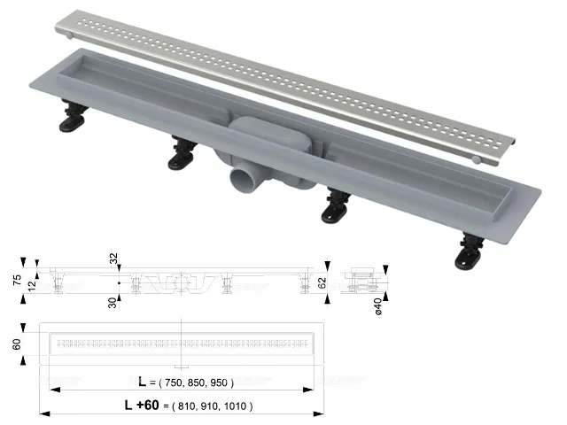 Водоотводящий желоб с порогами для перфорированной решетки (Simple), Alcaplast
