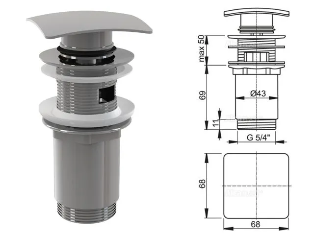 Водослив для умывальника click/clack 5/4 цельнометаллический с квадратной заглушкой ALCAPLAST (A393) предназначен для раковин с переливом.