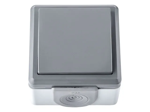 Выключатель 1 клав. (открытый, 10А, струезащ.) серый, Пралеска Аква, BYLECTRICA