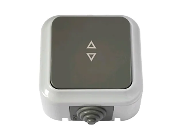 Выключатель 1 клав. проходной (открытый, 10А, брызг. защ.) серый, Пралеска Аква, BYLECTRICA