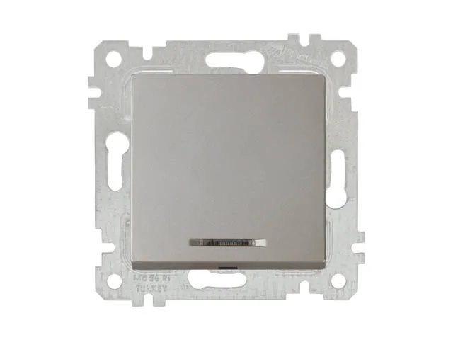 Выключатель 1-клав. (с подсветкой, скрытый, без рамки, винт. зажим) титан, RITA, MUTLUSAN