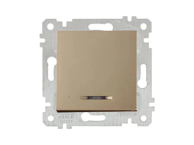 Выключатель 1-клав. (с подсветкой, скрытый, без рамки, винт. зажим) золото, RITA, MUTLUSAN
