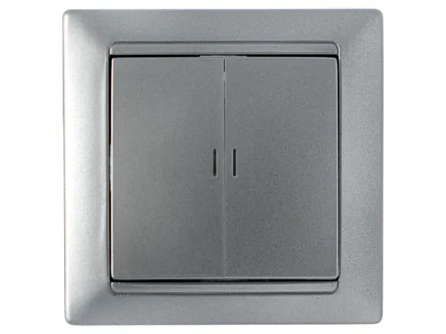 Выключатель 2 клав. (cкрытый, 10А) со световой индикацией, серебро, Стиль, BYLECTRICA