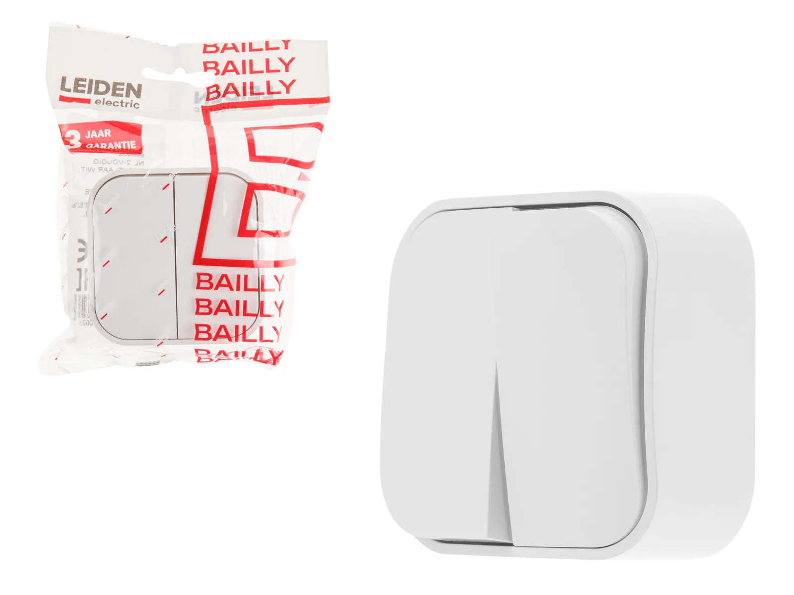 Выключатель 2 клав. (открытый, 10А) белый, Bailly, LEIDEN ELECTRIC