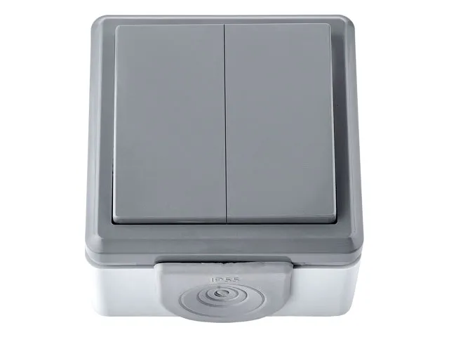 Выключатель 2 клав. (открытый, 10А, струезащ.) серый, Пралеска Аква, BYLECTRICA