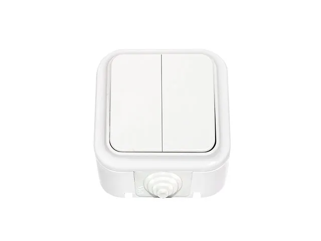 Выключатель 2 клав. (открытый, 6А, брызг. защ.) белый, Пралеска Аква, Bylectrica