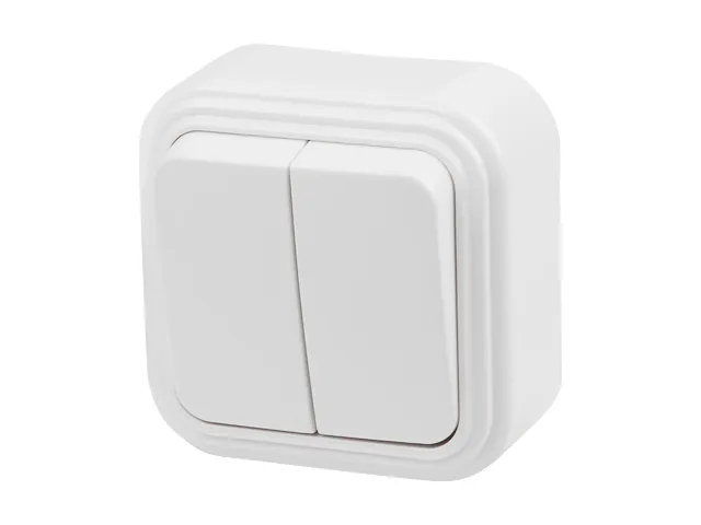 Выключатель 2 клав. (открытый, до 6А) белый, Стандарт, Юпитер