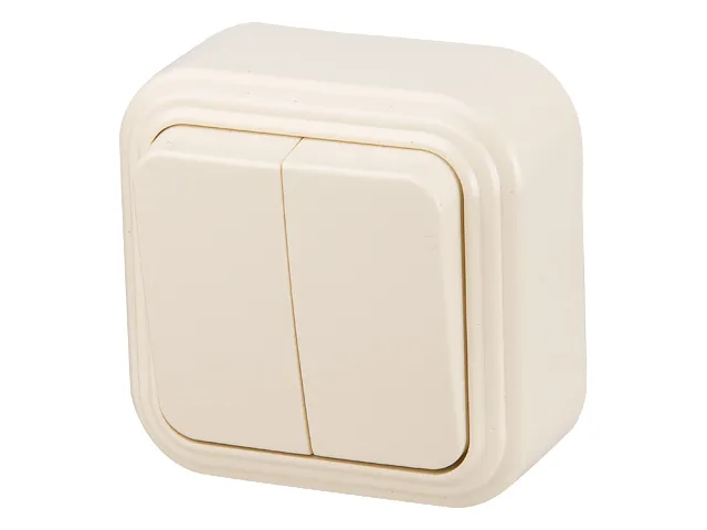 Выключатель 2 клав. (открытый, до 6А) бежевый, Стандарт, Юпитер
