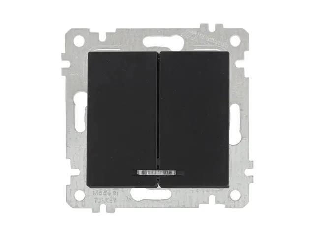 Выключатель 2-клав. (с подсветкой, скрытый, без рамки, винт. зажим) черный, RITA, MUTLUSAN