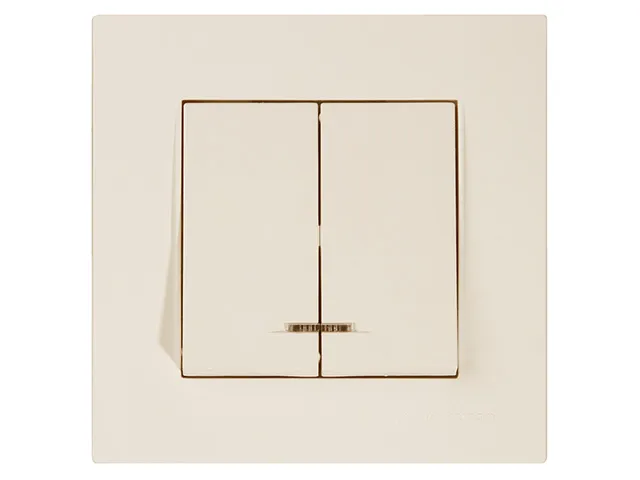 Выключатель 2-клав. (с подсветкой, скрытый, винт. зажим) кремовый, RITA, MUTLUSAN