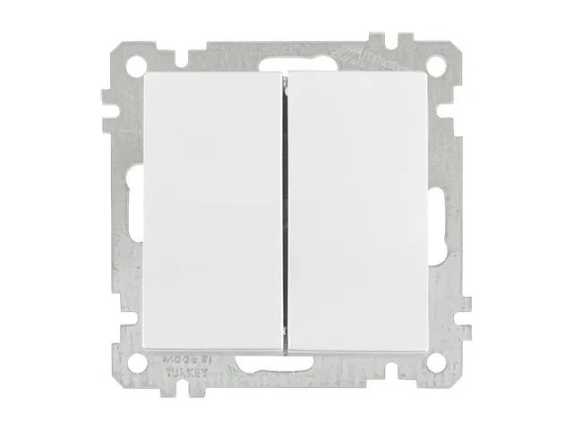 Выключатель 2-клав. (скрытый, без рамки, пруж. зажим) белый, DARIA, MUTLUSAN