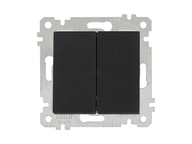 Выключатель 2-клав. (скрытый, без рамки, пруж. зажим) черный, RITA, MUTLUSAN