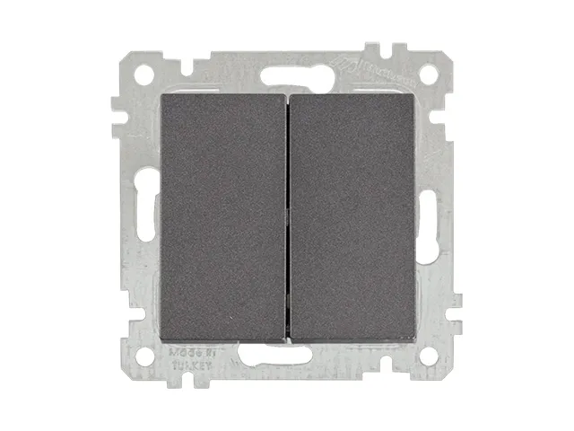 Выключатель 2-клав. (скрытый, без рамки, винт. зажим) дымчатый, RITA, MUTLUSAN