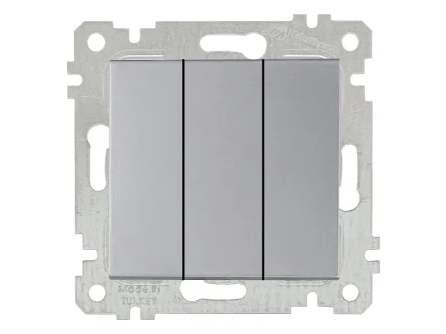 Выключатель 3-клав. (скрытый, без рамки, пруж. зажим) серебро, RITA, MUTLUSAN