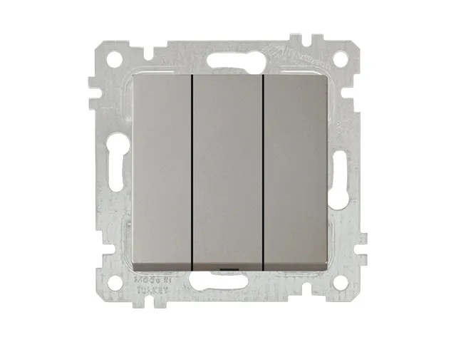 Выключатель 3-клав. (скрытый, без рамки, винт. зажим) титан, RITA, MUTLUSAN