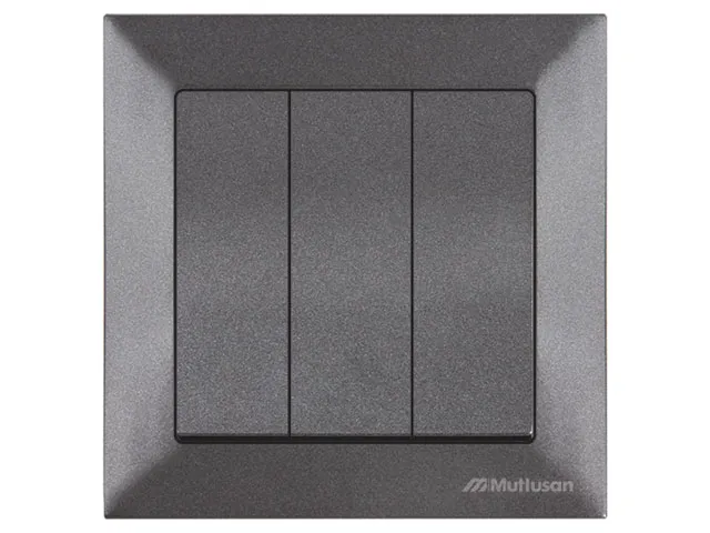 Выключатель 3-клав. (скрытый, пруж. зажим) дымчатый, DARIA, MUTLUSAN