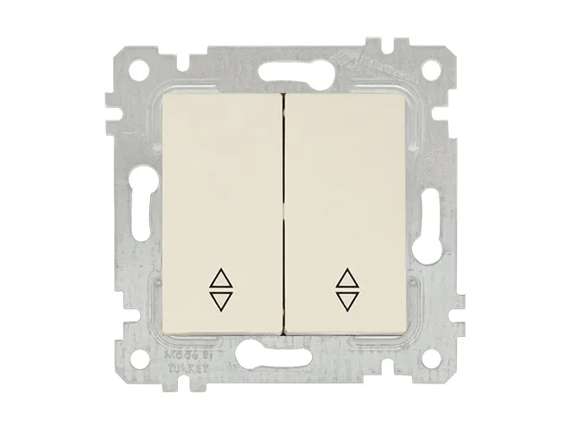 Выключатель проходной 2-клав. (скрытый, без рамки, пруж. зажим) кремовый, RITA, MUTLUSAN