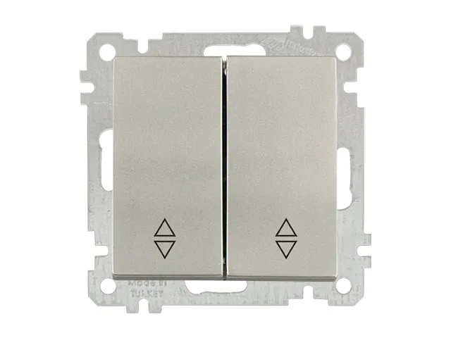 Выключатель проходной 2-клав. (скрытый, без рамки, пруж. зажим) титан, DARIA, MUTLUSAN