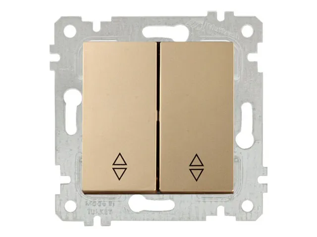 Выключатель проходной 2-клав. (скрытый, без рамки, винт. зажим) золото, RITA, MUTLUSAN