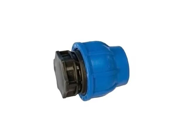 Заглушка компрессионная концевая для труб ПНД (полиэтилена низкого давления). Монтаж системы технического трубопровода либо трубопровода для питьевой воды довольно простой. Труба ПНД вставляется через втулку запрессовывающую диаметром 25 мм в компрессионную заглушку, фиксируется накидным кольцом, гайка плотно закручивается. Для того, чтобы система была герметична, для защиты системы от протекания, используется уплотнительное кольцо.