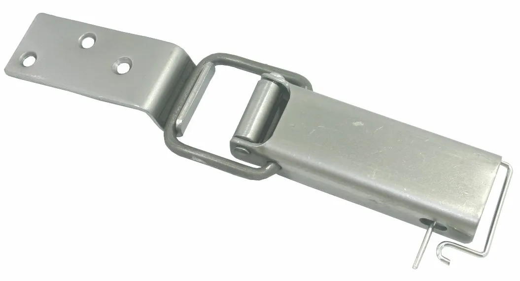 Замок устанавливается на деревянные и металлические ящики, а также разнообразные боксы, кофры, кожухи и другую тару. Обеспечивает прочную фиксацию крышки в закрытом состоянии. Конструктивно состоит из нескольких основных элементов: основания, рычага, крючка, серьги, оси, стопорной вилки.