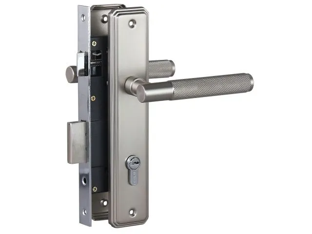 Замок врезной с комплектом ручек на планке. Предназначен для установки в деревянные двери толщиной 30 - 38 мм, правого и левого открывания. Материал ручки - прочный стальной пруток с продолжительным сроком службы. Удобная, безопасная форма с рифленой поверхностью. Материал планки - сталь. Покрытие комплекта ручек: гальваническое, многослойное.