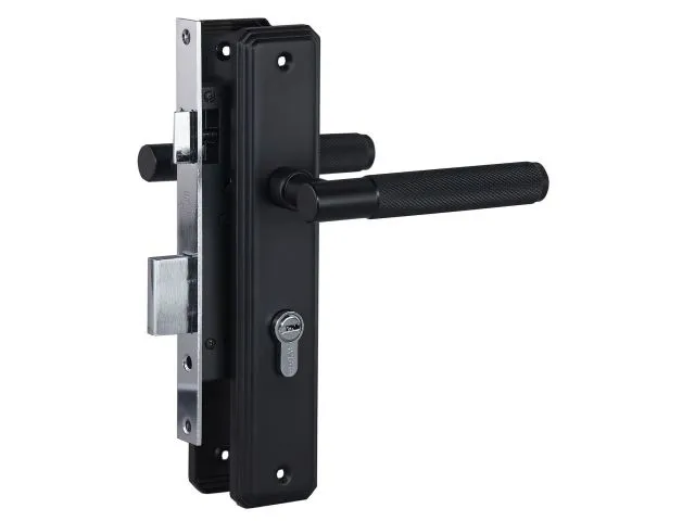 Замок врезной с комплектом ручек на планке. Предназначен для установки в деревянные двери толщиной 30 - 38 мм, правого и левого открывания. Материал ручки - прочный стальной пруток с продолжительным сроком службы. Удобная, безопасная форма с рифленой поверхностью. Материал планки - сталь. Покрытие комплекта ручек: катафорезное лакокрасочное, с высокой коррозионной стойкостью.