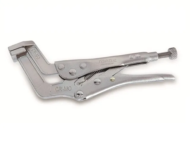 Зажим-струбцина с изогнутыми губками TOPTUL изготовлен из высококачественной стали и имеет насечки на захватывающей поверхности, исключающие соскальзывание инструмента. Зажим оснащен механизмом регулировки ширины захвата и фиксатором. Рекомендуется для профессионального использования.